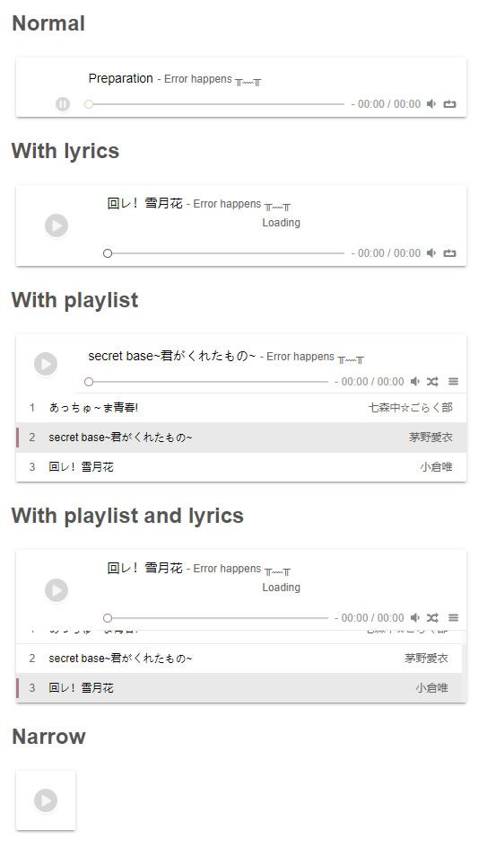 APlayer 是一個可愛的 HTML5 音樂播放器。APlayer 支持:媒體格式 - MP4 H.264(AAC或MP3) - WAVE PCM - Ogg Theora Vorbis,F(xiàn)eatures - Playlist - Lyrics