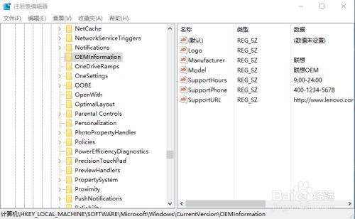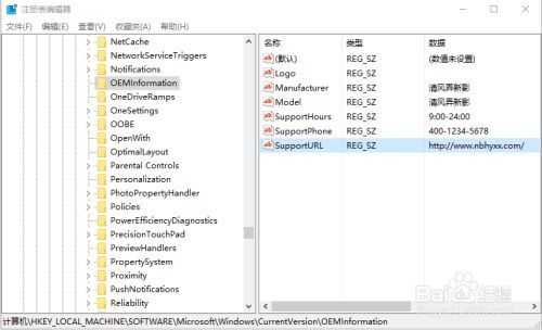 在注冊表編輯器里找到HKEY_LOCAL_MACHINE--SOFTWARE--Microsoft--Windows--CurrentVersion--OEMInformation項目里找到"Model"
