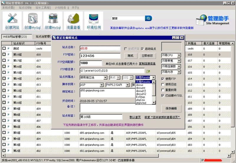 安裝網(wǎng)站管理集成包以后,能正常建立文件夾,但提示無(wú)法建立新用戶,創(chuàng)建網(wǎng)站失敗的解決方法。