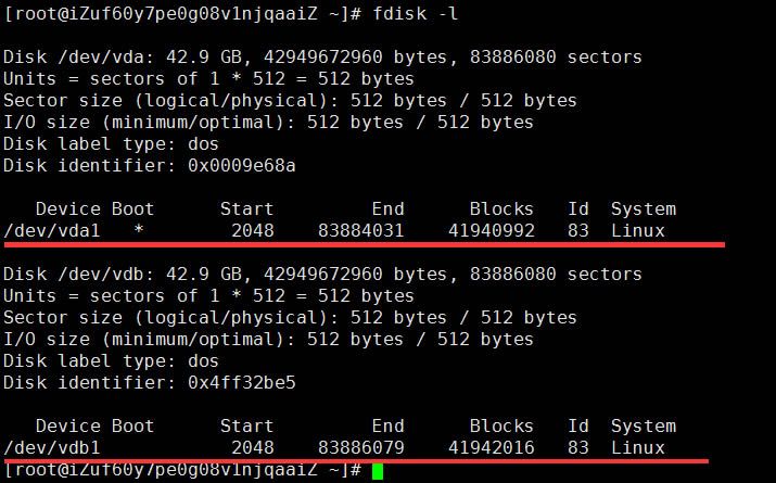 從上圖可以看出,服務器的 /dev/vdb 42.9GB 此磁盤未掛載;